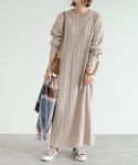 recastaff(reca)のワンピース「ケーブル編みニットロングワンピース」を使ったコーディネート
