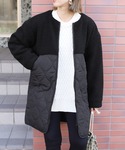 recastaff(reca)のノーカラーコート「ノーカラー ボア×中綿キルティングコート」を使ったコーディネート