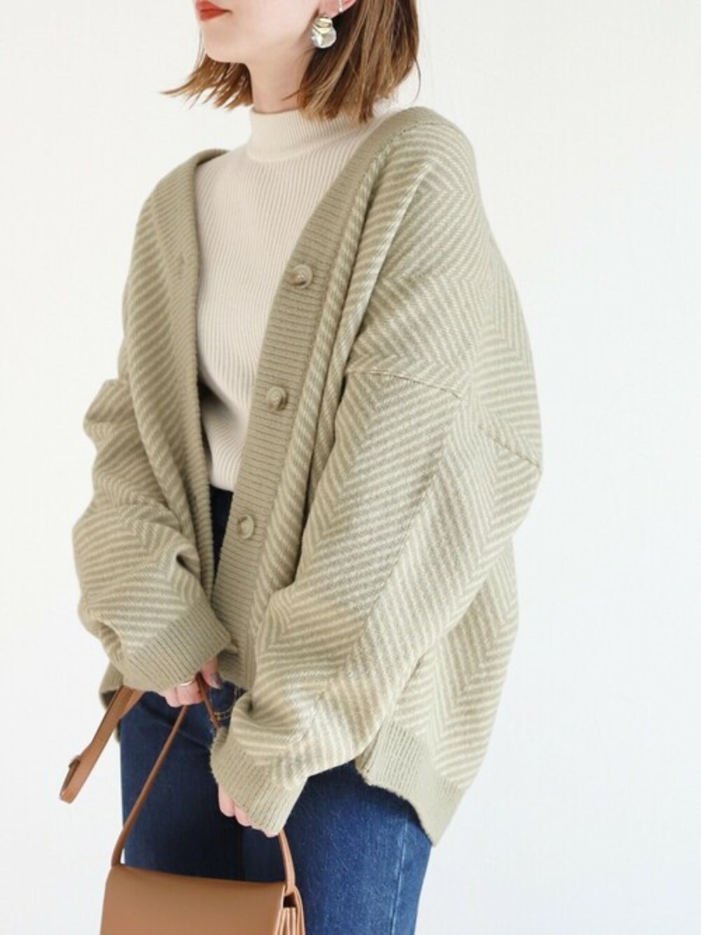 recastaff(reca)のカーディガン/ボレロ「ヘリンボーンニットカーディガン」を使ったコーディネート