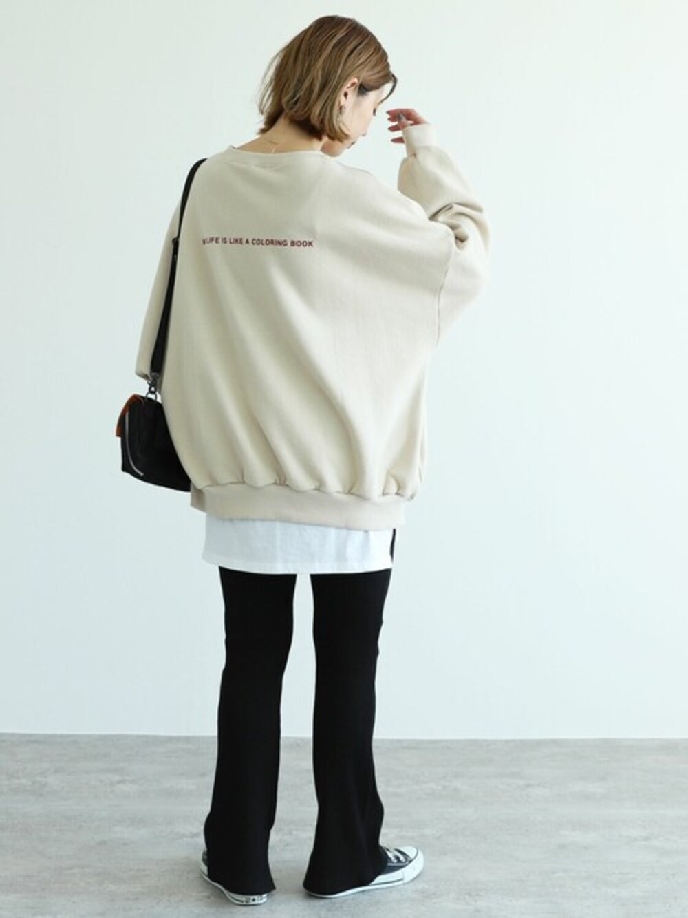recastaff(reca)のスウェット「裏起毛フロッキーバックプリントビッグスウェット」を使ったコーディネート