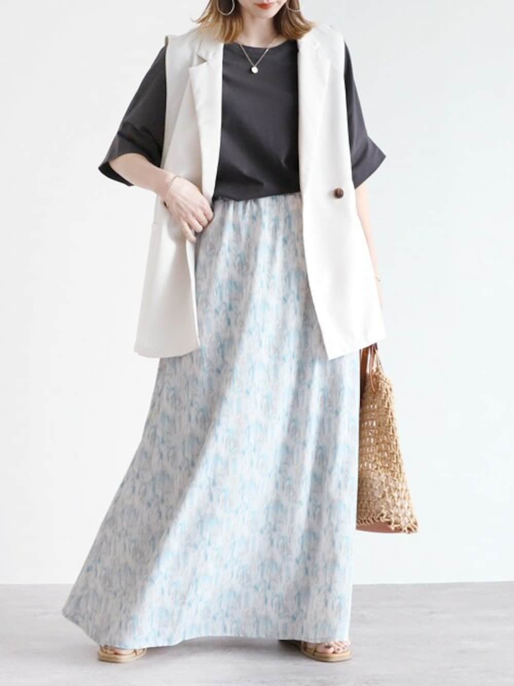 recastaff(reca)のスカート「ペイント柄ロングスカート」を使ったコーディネート