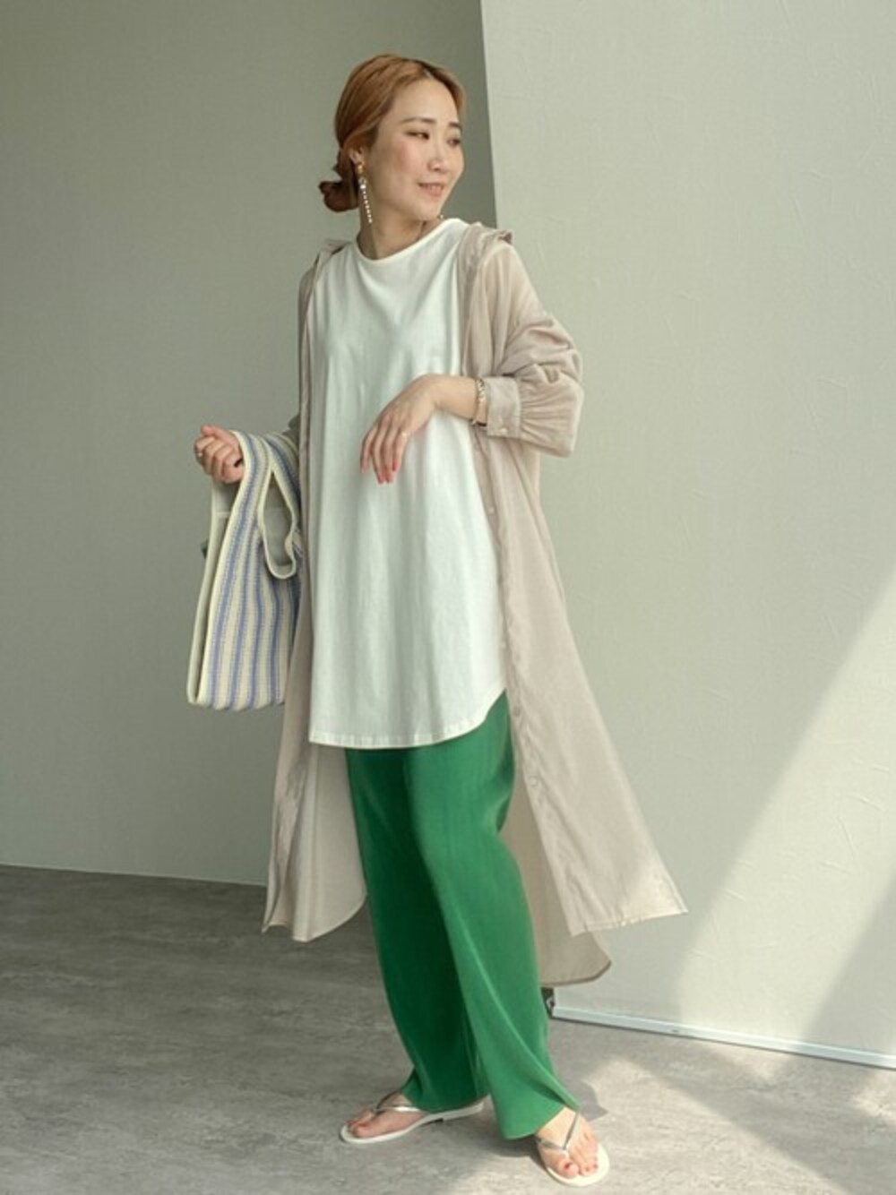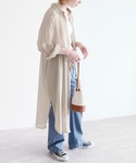 ■2022SS HIT ITEM■ シアー感のあるシャツワンピースとカラーボトムスで夏らしいコーデに◎ 梅雨の寒い季節は大活躍間違いなしの羽織れるシャツはマストアイテムですよ! ”シアーボイルシャツワンピース” カラー:ベージュ / ブラック / オレンジ ”自分の好みの着丈にできる!セルフカットプリーツパンツ” カラー:ブラック / グリーン / アイボリー / ブルー