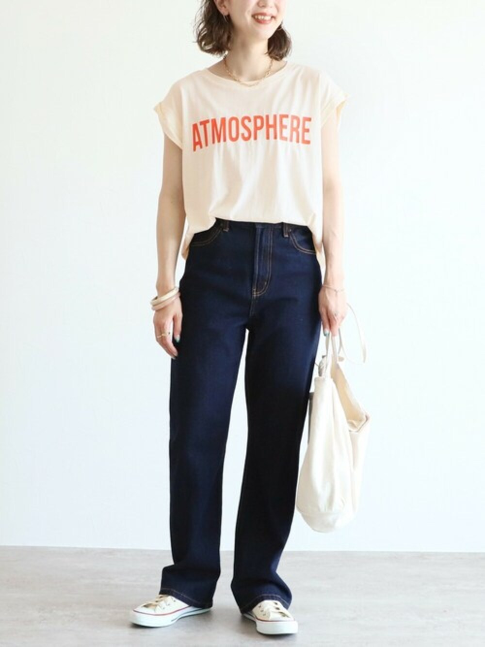 recastaff(reca)のTシャツ/カットソー「フレンチスリーブロゴT」を使ったコーディネート