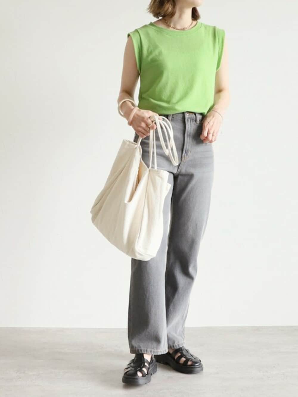 recastaff(reca)のTシャツ/カットソー「リネンミックスノースリーブTシャツ」を使ったコーディネート