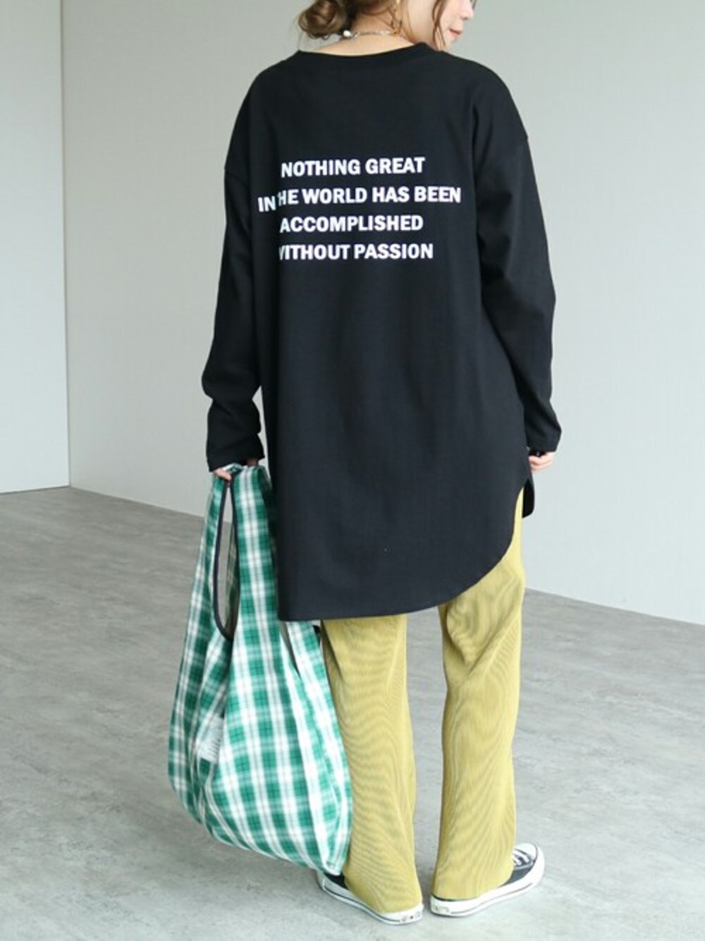 recastaff(reca)のTシャツ/カットソー「【ZOZOTOWN限定】ラクに体型カバー!バッグロゴプリントロンT」を使ったコーディネート