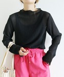 recastaff(reca)のシャツ/ブラウス「シースルーメロー楊柳プリーツハイネックプルオーバー」を使ったコーディネート