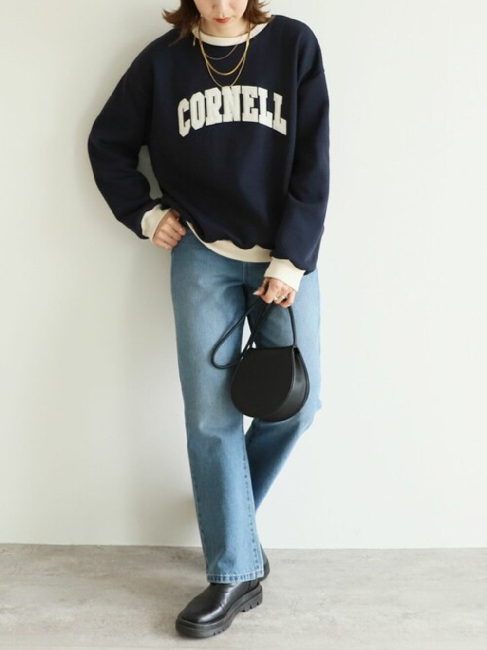 recastaff(reca)のスウェット「裏起毛ロゴ入りバイカラースウェットプルオーバー」を使ったコーディネート