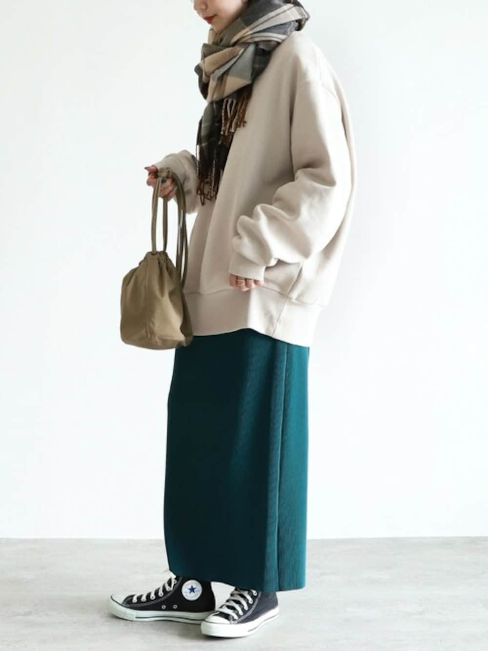recastaff(reca)のスウェット「オーバーサイズバッグプリント裏起毛スウェット」を使ったコーディネート