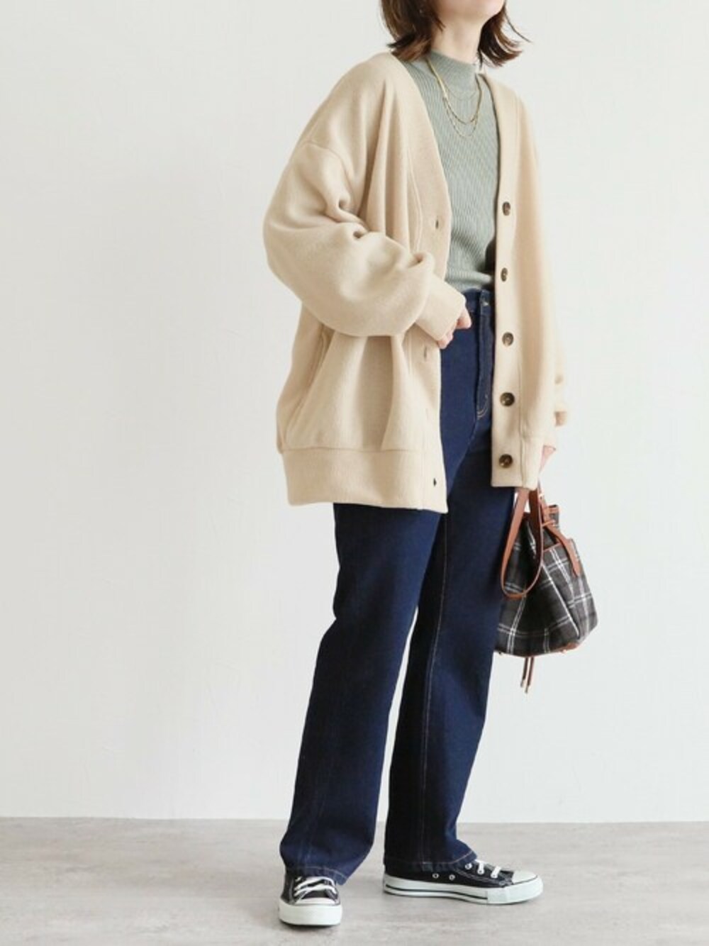 recastaff(reca)のカーディガン/ボレロ「サイドポケット起毛BIGカーディガン」を使ったコーディネート