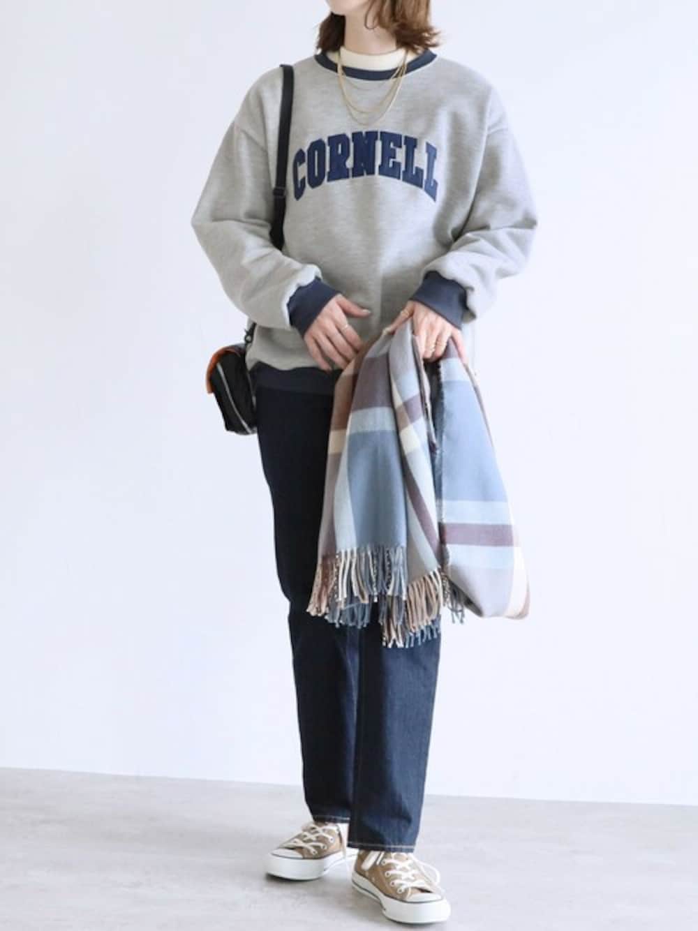 ■2022AW PICK ITEM■ 大人カジュアルにピッタリのアクセントのあるロゴスウェット。 裏起毛でぬくぬくあったかいのがうれしい♡ バイカラーのリブがコーディネイトがに動きをつけ ロゴの立体的なデザインがパッと目を惹く1枚です。 ”裏起毛ロゴ入りバイカラースウェットプルオーバー” 【3color】 ¥4,400- ”チェック柄大判ストール” 【10color】 ¥2,970-