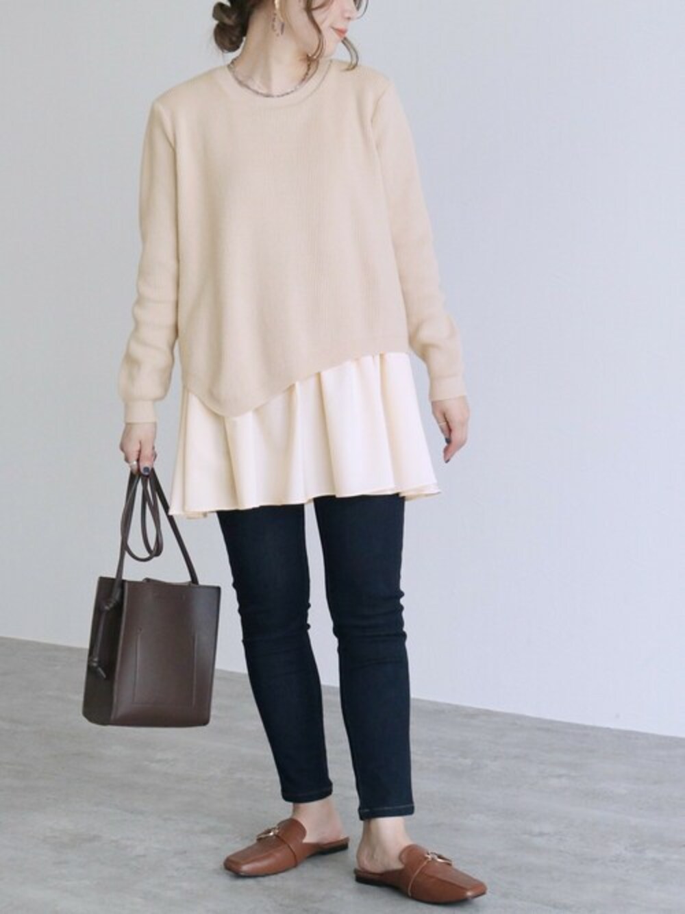 recastaff(reca)のニット/セーター「アンバランスフレアヘムニット」を使ったコーディネート