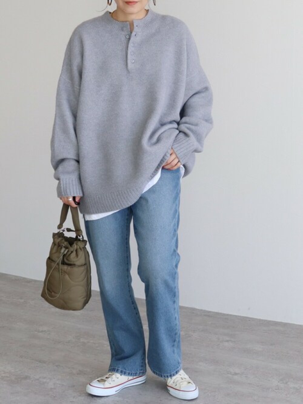 recastaff(reca)のニット/セーター「ヘンリーネックニットプルオーバー」を使ったコーディネート