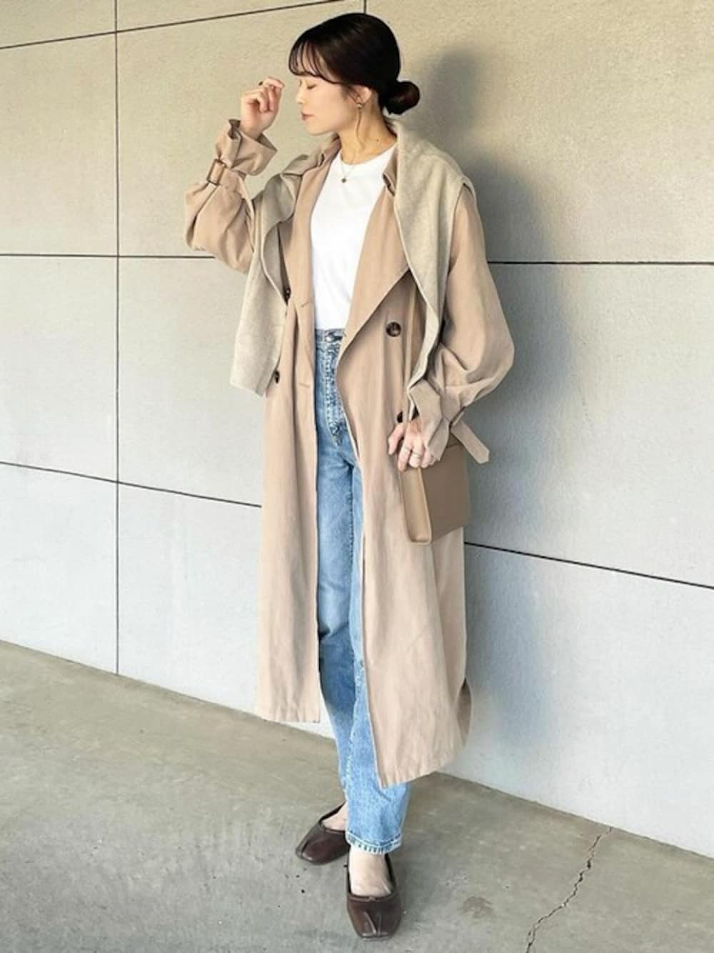 recastaff(reca)のトレンチコート「【2サイズ展開】キャンディ袖ビッグトレンチコート」を使ったコーディネート
