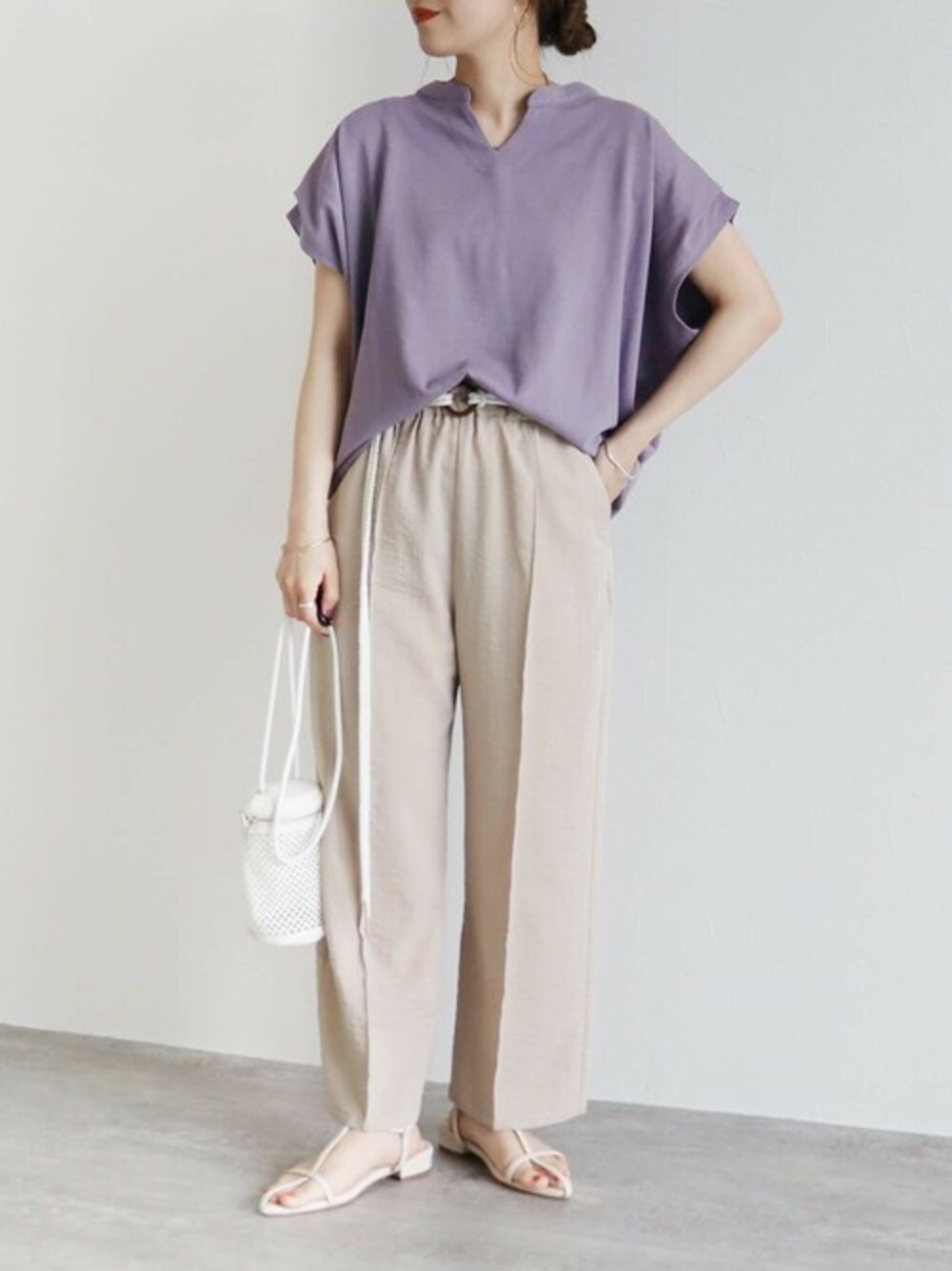 recastaff(reca)のその他パンツ「ラクに履けてスッキリ着こなせる!リネンタッチベルト付きリラックスパンツ」を使ったコーディネート