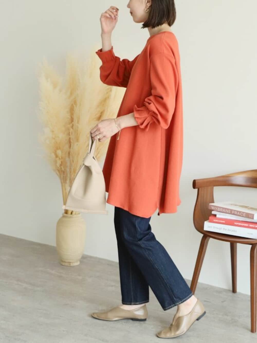 ■2023AW NEW COLER■ ゆったりしたサイジングのふんわりラインフレアカットソーに 2023AWの新しいカラーが仲間入り♪ ▶レッド系 (BRICK RED) かわいいので、ぜひチェックしてみてくださいね♡ ”ふんわりAラインシルエット!タックスリーブフレアカットソー” 【7color】 ¥3,960-