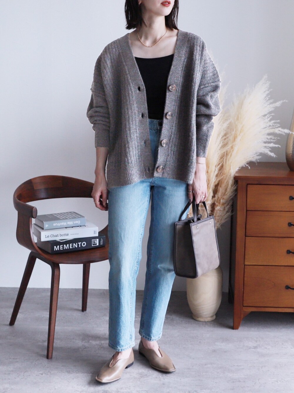 recastaff(reca)のカーディガン/ボレロ「長袖Vネックニットカーディガン」を使ったコーディネート