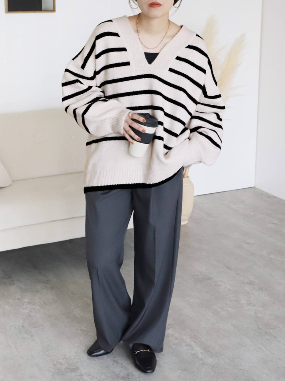 recastaff(reca)のニット/セーター「Vネックボーダーニットプルオーバー」を使ったコーディネート