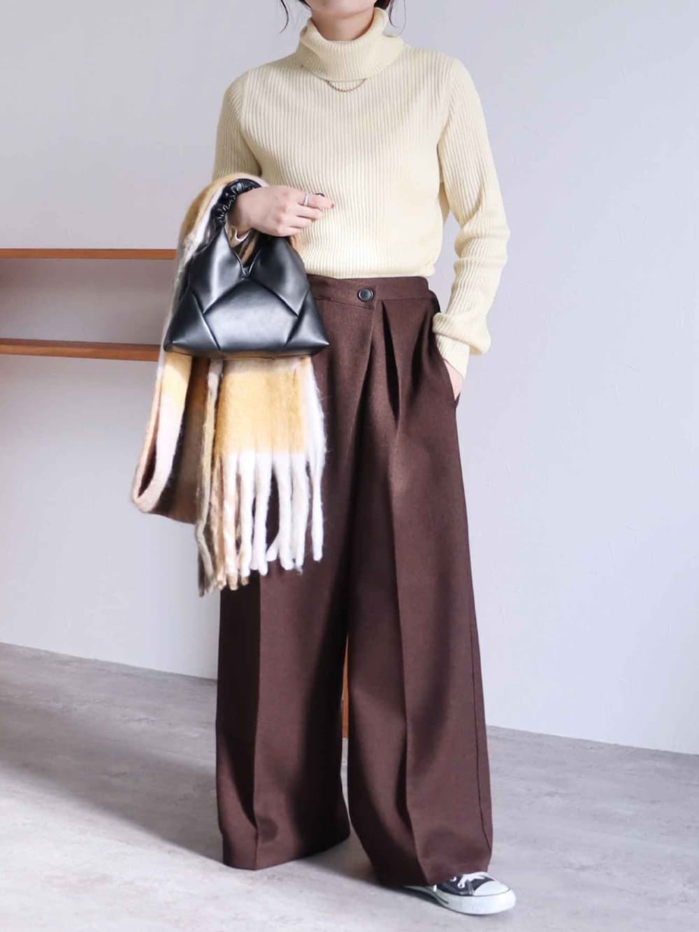 recastaff(reca)のニット/セーター「サイズが選べて、カラバリ豊富!リブタートルベーシックハイネックニット」を使ったコーディネート