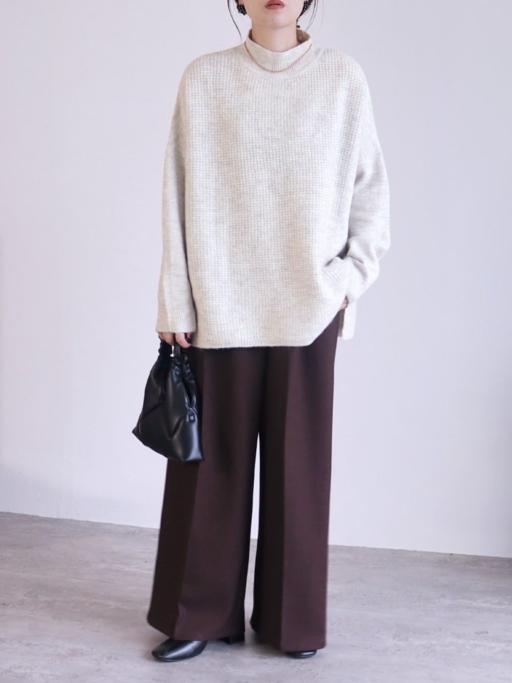 recastaff(reca)のニット/セーター「ビッグシルエットハイネックニット」を使ったコーディネート