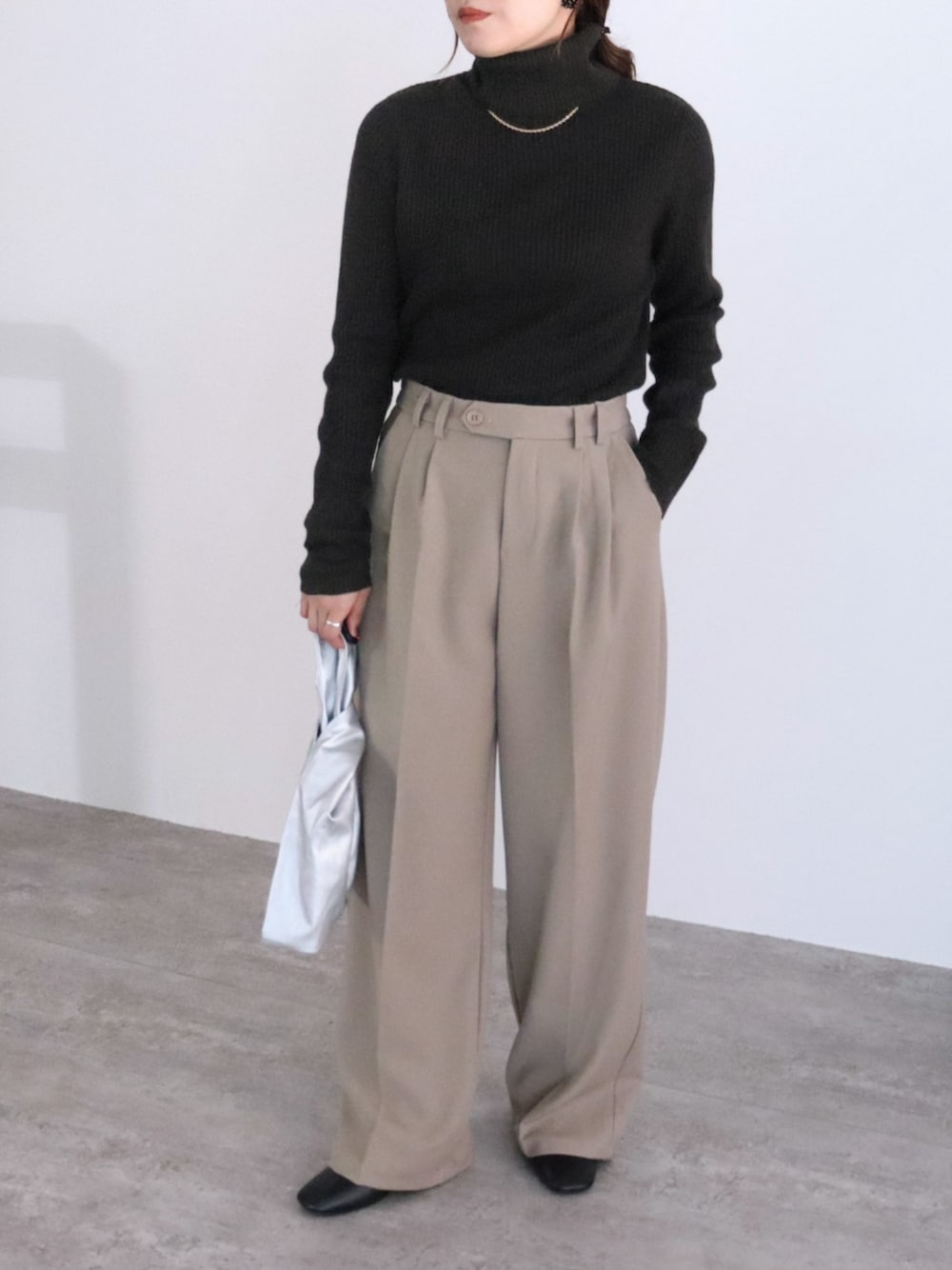 recastaff(reca)のニット/セーター「サイズが選べて、カラバリ豊富!リブタートルベーシックハイネックニット」を使ったコーディネート