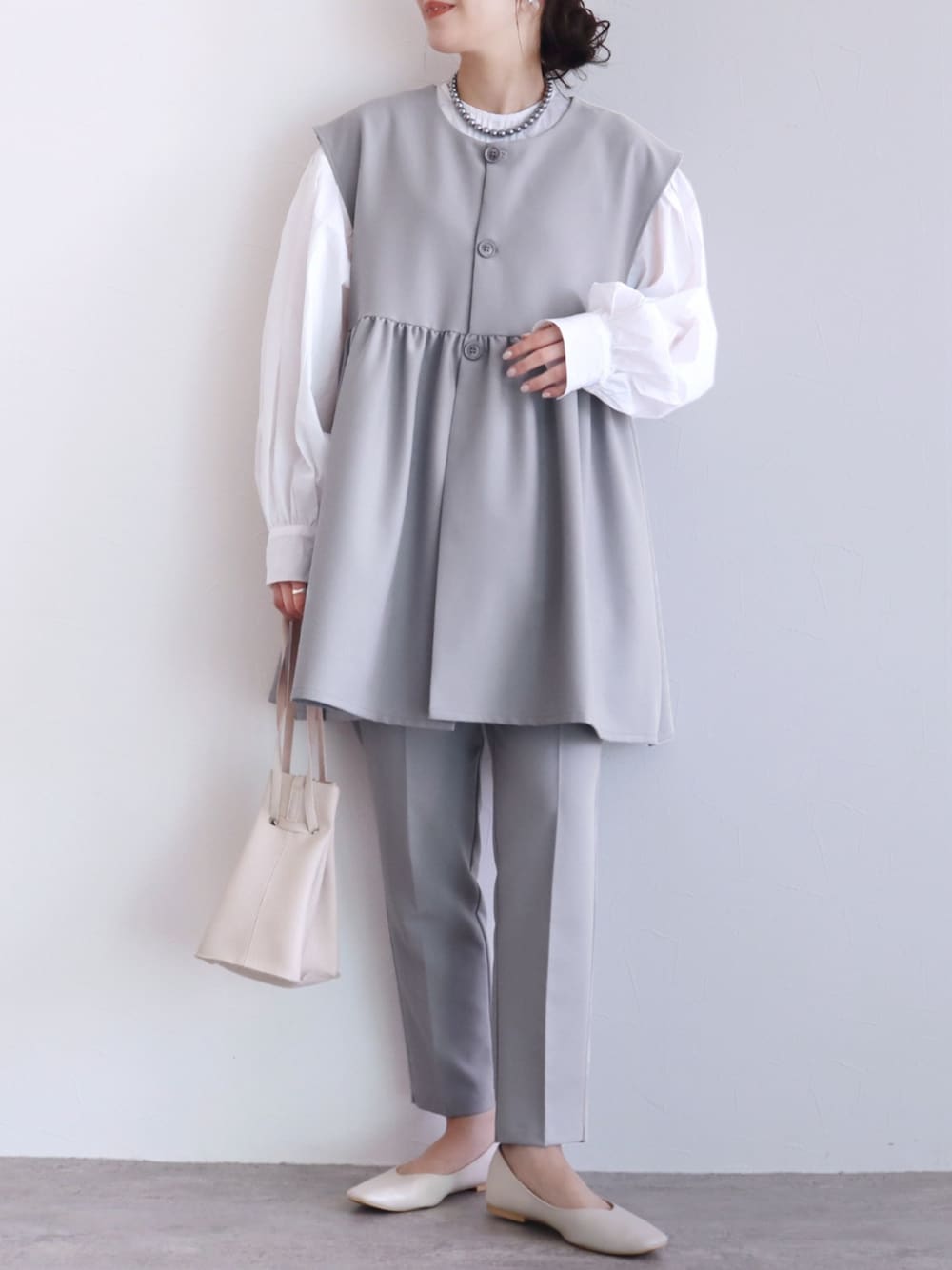recastaff(reca)のスーツセット「ペプラムベスト×テーパードパンツ2点セット」を使ったコーディネート