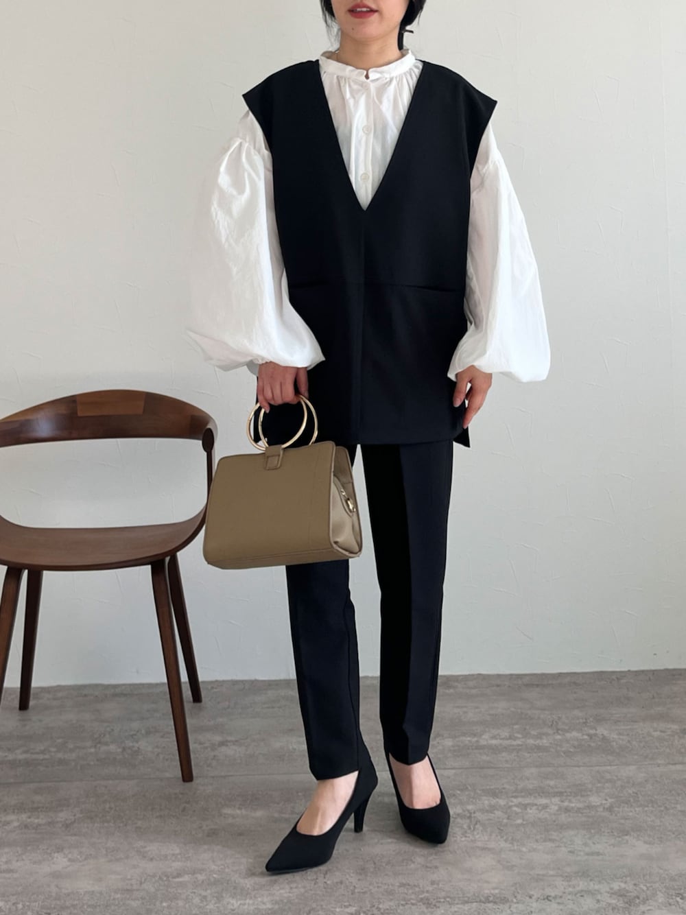 ■Staff Code 全体的にコンパクトなシルエットだったので、ボリューム感のあるブラウスと合わせてみました!