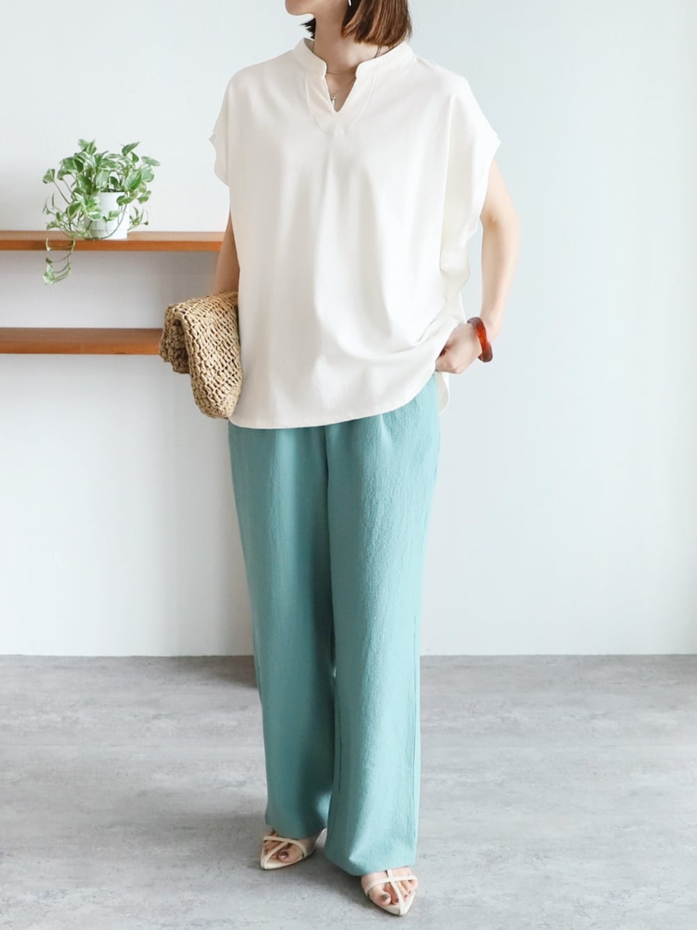 recastaff(reca)のTシャツ/カットソー「スリットネックフレンチスリーブカットソー」を使ったコーディネート