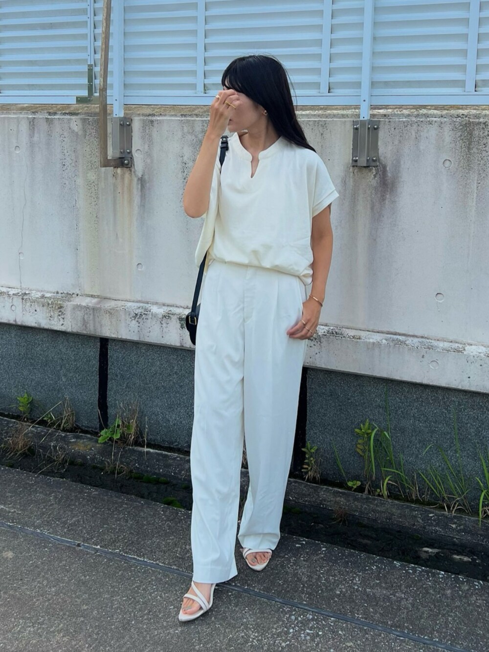 recastaff(reca)のTシャツ/カットソー「綿100%!キーネックドルマンワイドTシャツ」を使ったコーディネート