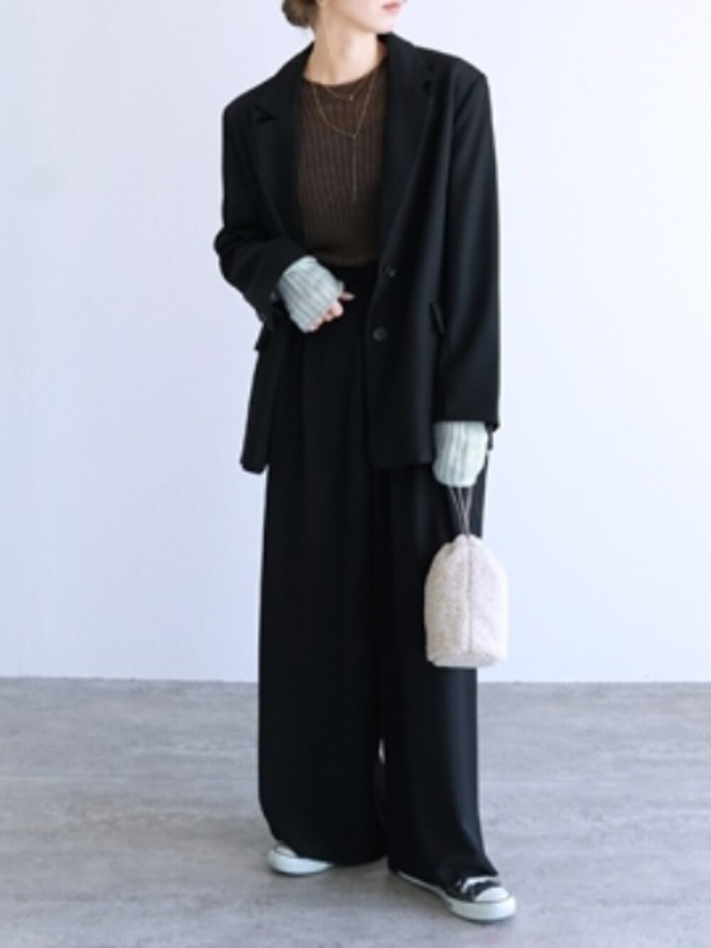 \ただいまタイムセール実施中!/ "袖切替ニットプルオーバー" インナーニット 50%OFF にて販売中✨ "オーバーサイズツイルジャケット" "ツイルタックワイドパンツ" こちらのセットにもなるスーツもタイムセール中です😊