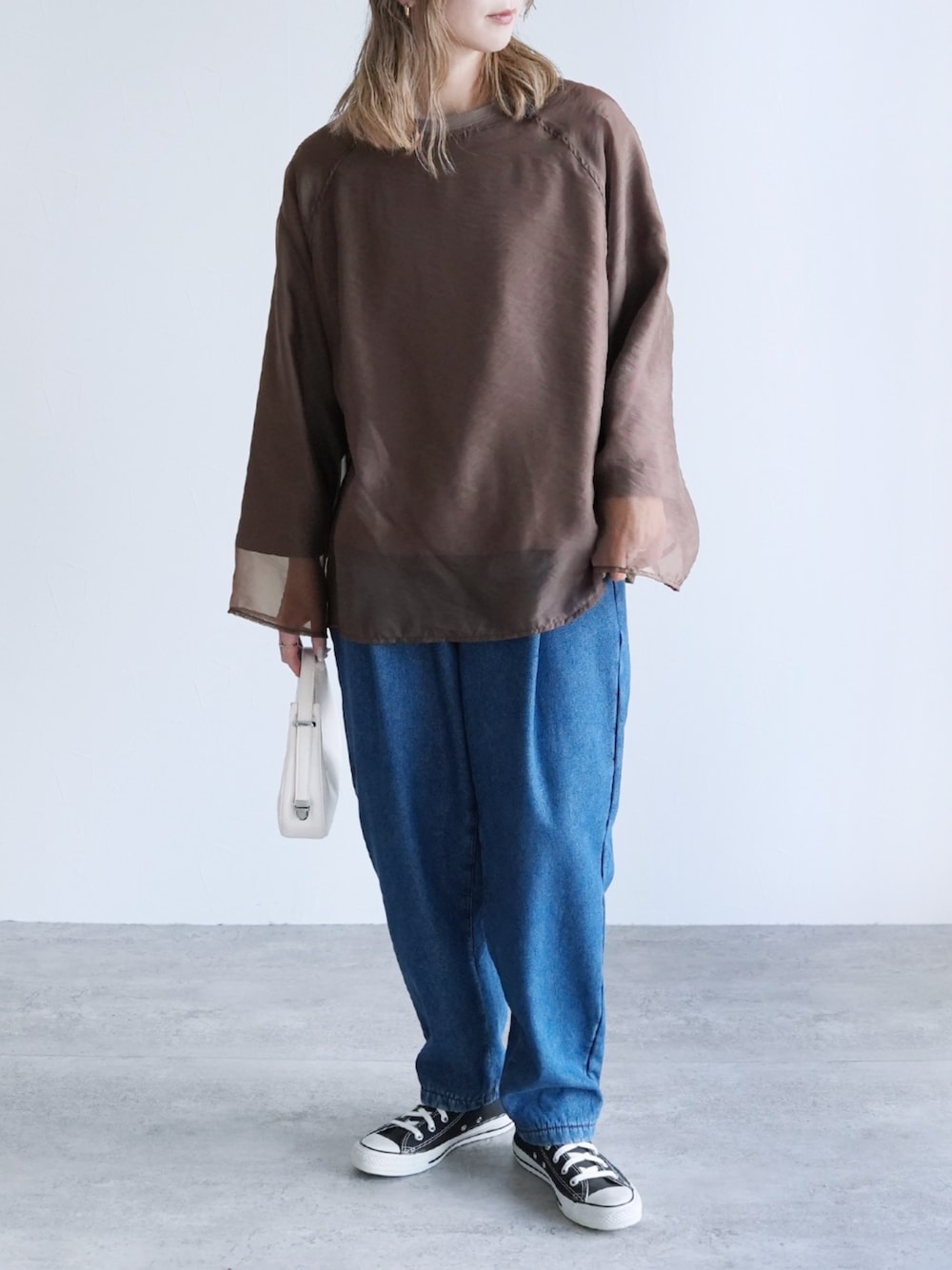 \ただいまタイムセール実施中!/ サッと着るだけで、マネしやすい! オーガンジーがこなれ感のあるコーディネイトに😊 ”オーガンジー重ねラグランプルオーバー” 45%off ¥2,970-