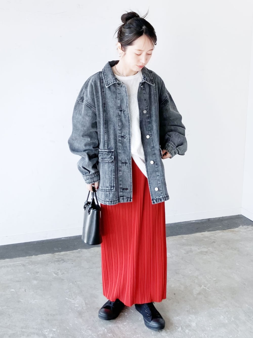 "デニムワークジャケット" "迷わず着れる!大人のロングプリーツスカート" 今着るのにちょうどいい♡ ラフな雰囲気がお気に入りのコーディネイト!