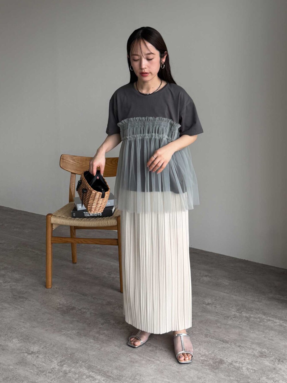 reca ▶チュールドッキングTシャツ ▶迷わず着れる!大人のセミワイドプリーツパンツ instagram @reca.zozotown