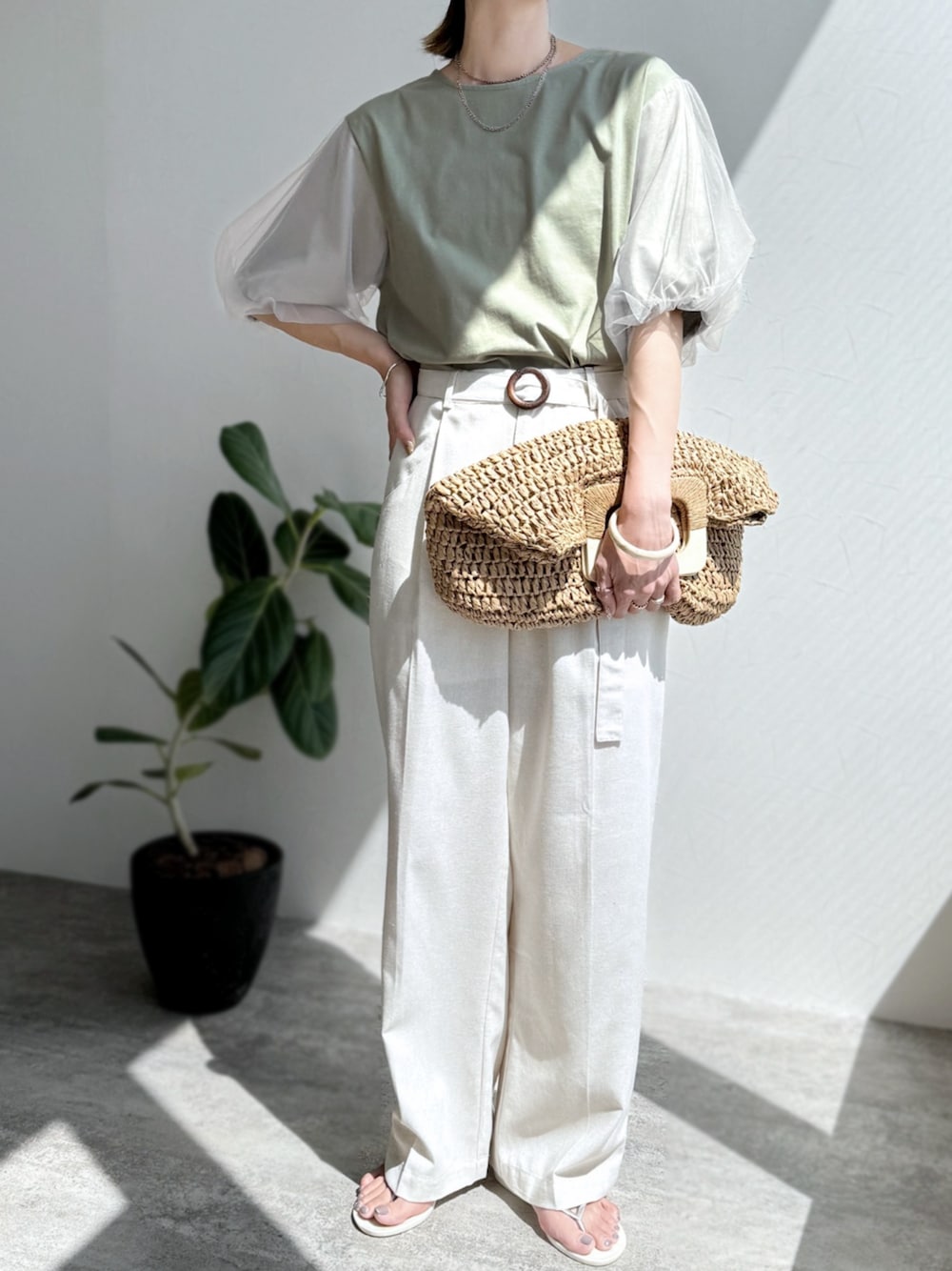 \お得な【ZOZOWEEK】開催中!/ 🥡reca🥡 ▶無地&ボーダー袖チュールボリューム袖プルオーバー ▶【低身長さんから高身長さんまで!】リネンベルトパンツ instagram @reca.zozotown