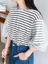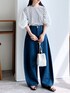 recastaff(reca)のTシャツ/カットソー「無地&ボーダー袖チュールボリューム袖プルオーバー」を使ったコーディネート