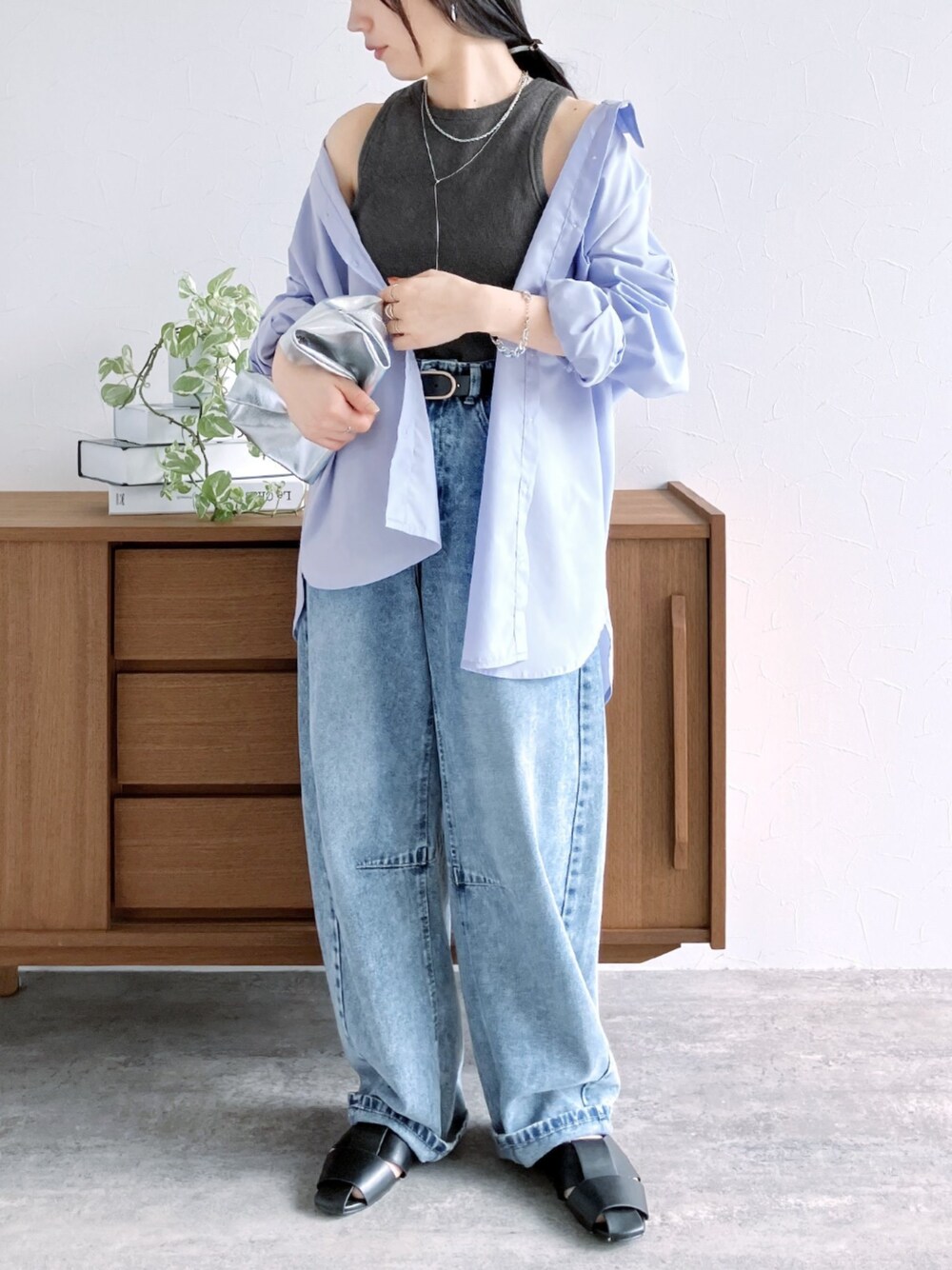 recastaff(reca)のデニムパンツ「デニムバレルレッグパンツ」を使ったコーディネート