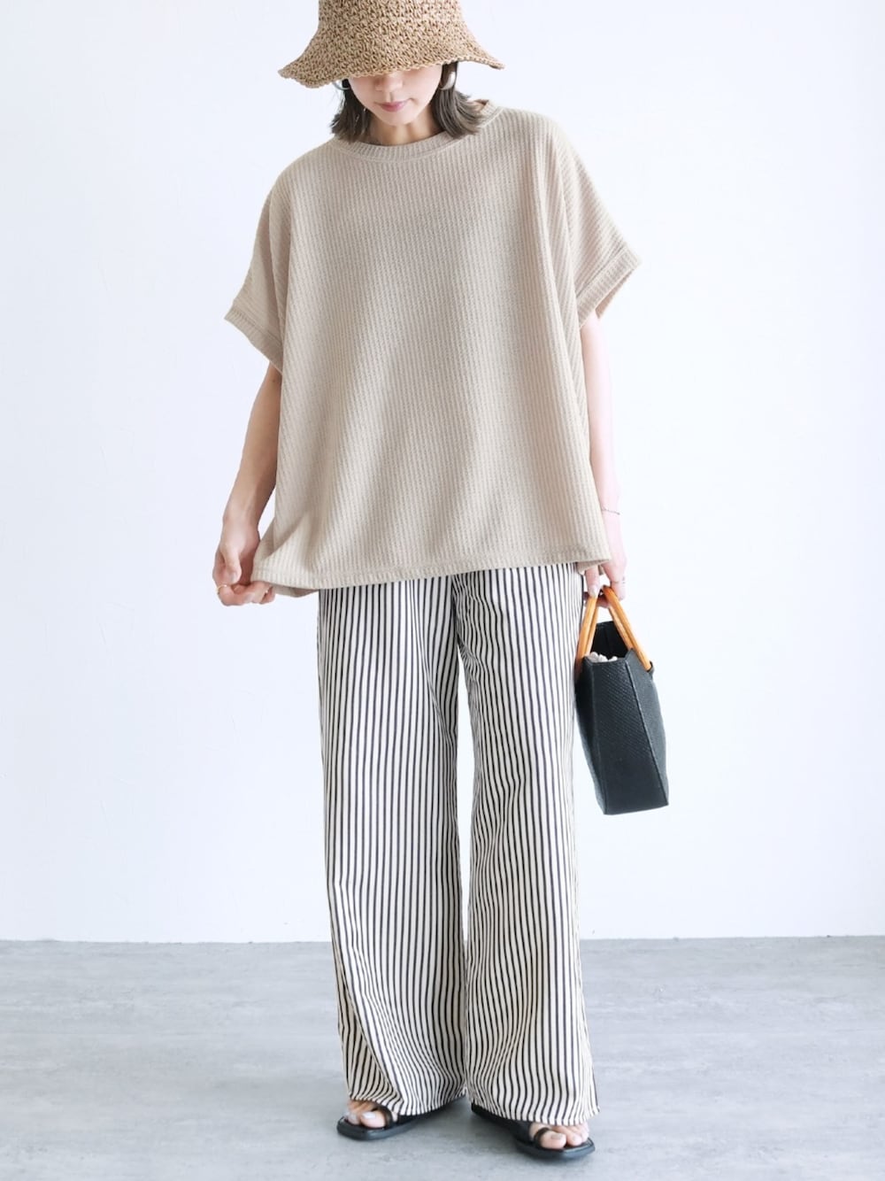 recastaff(reca)のその他パンツ「無地/ストライプエンボス加工イージーパンツ」を使ったコーディネート