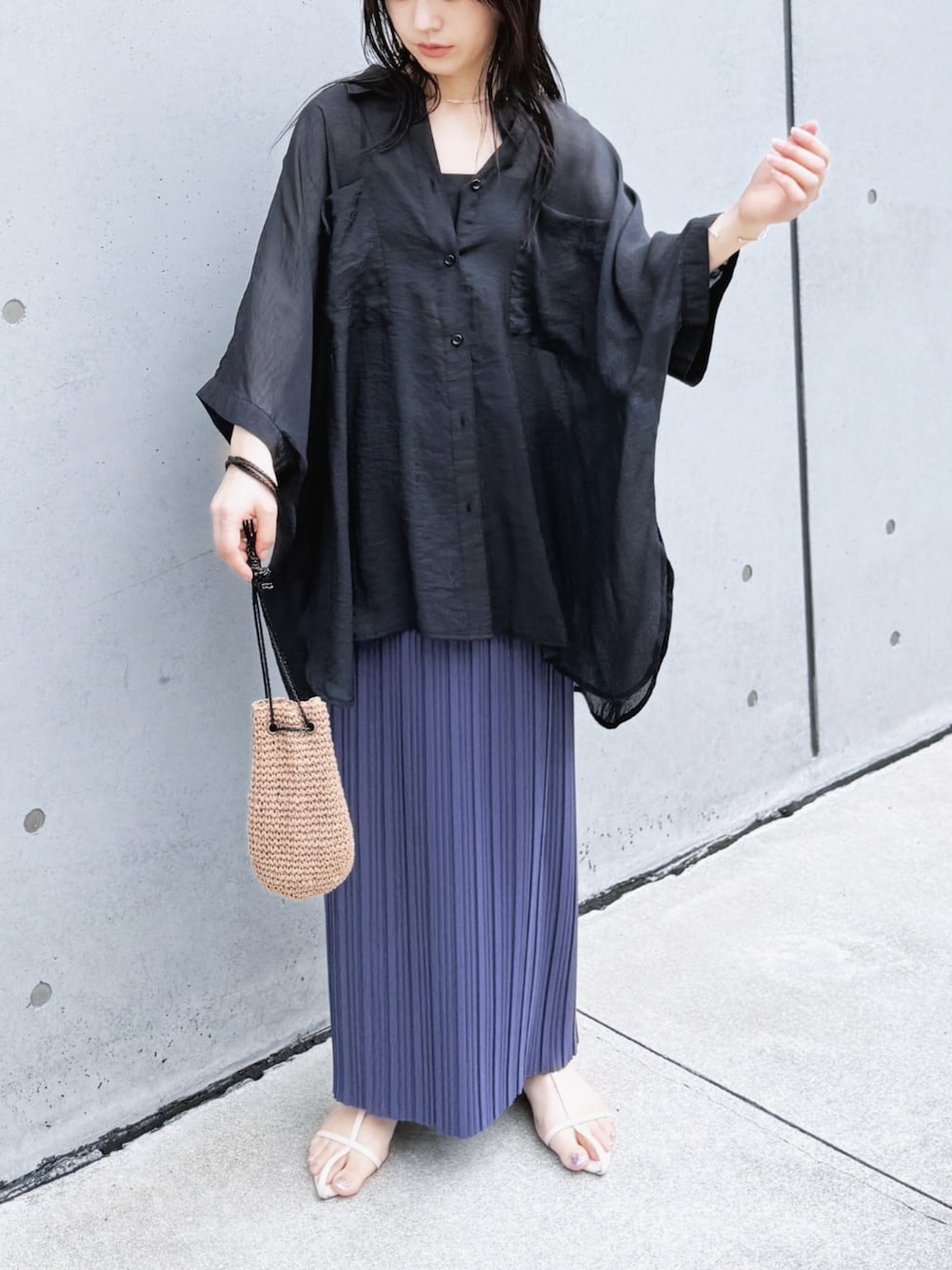 🍦reca🍦 ▶ドルマンシアーシャツ ▶迷わず着れる!大人のロングプリーツスカート instagram @reca.zozotown