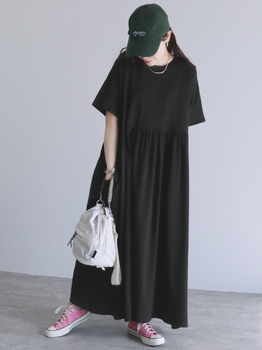 recastaff(reca)のワンピース「ウエストギャザー切替ワンピース」を使ったコーディネート
