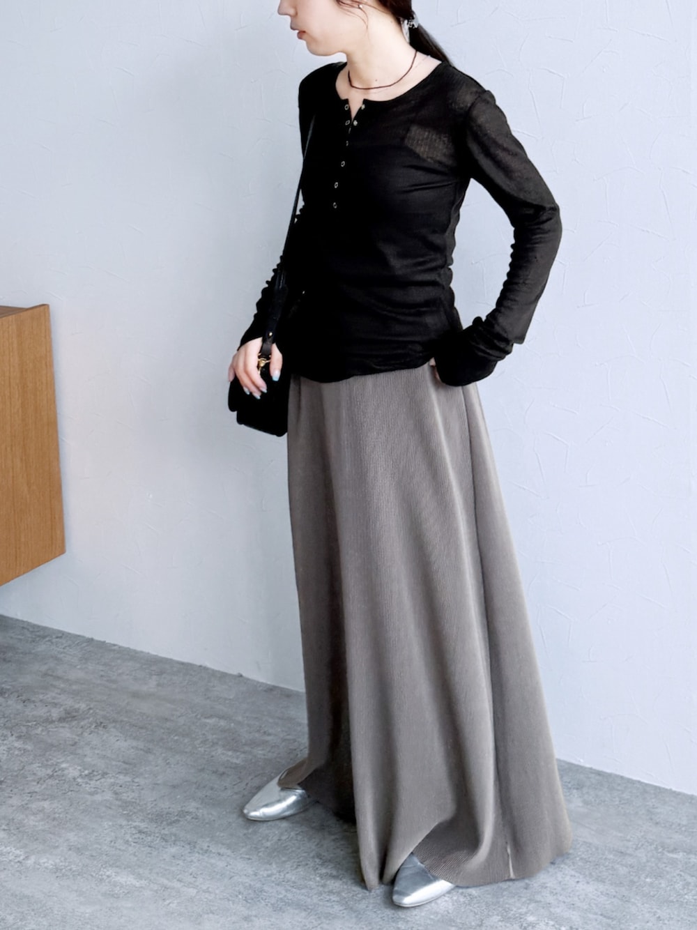 reca ▶シアーテレコヘンリーネック NEW🛒 ▶セルフカットマキシプリーツスカート instagram @reca.zozotown