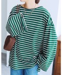 recastaff(reca)のTシャツ/カットソー「着丈が選べる! 無地/ボーダービッグTシャツ」を使ったコーディネート