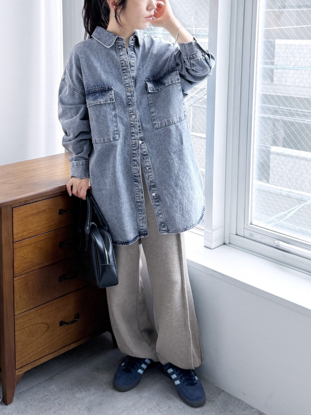 \AW早割!期間限定【タイムセール】実施中!/ reca ▶デニムシャツジャケット ▶2WAY裾スナップスウェットパンツ instagram @reca.zozotown