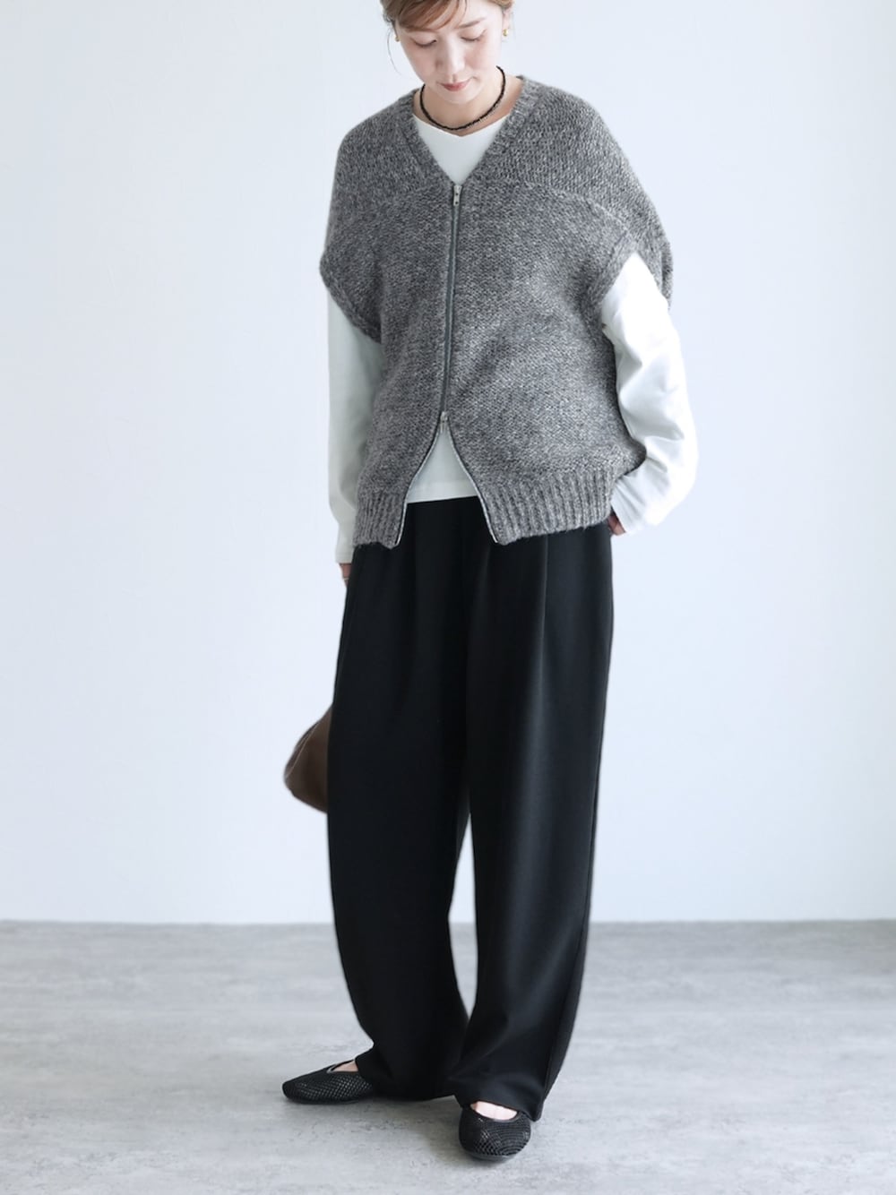 \2025AW NEW ARRIVAL/ reca ▶ダブルジップニットベスト ▶ドルマンスリーブVネックTシャツ ▶カットジョーゼットタックパンツ instagram @reca.zozotown