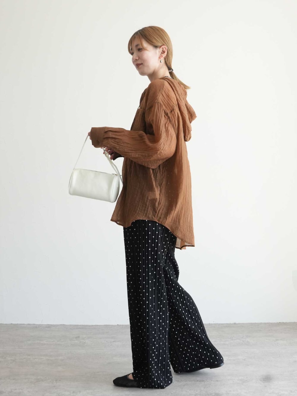 \2025AW NEW ARRIVAL/ reca ▶クリンクル加工フード付きシアーシャツ ▶迷わず着れる!大人のセミワイドプリーツパンツ 新柄✨ ブラック系その他5(ドット柄) 大好評で販売中です😊 instagram @reca.zozotown