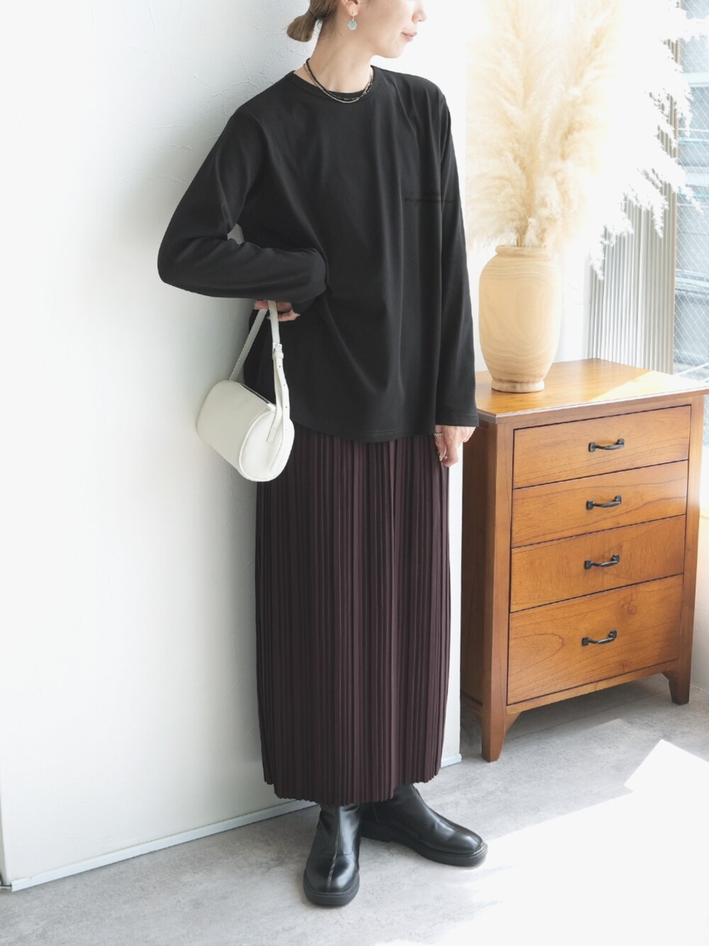 recastaff(reca)のスカート「【シリーズ累計販売数178,150枚突破!】迷わず着れる!大人のロングプリーツスカート」を使ったコーディネート