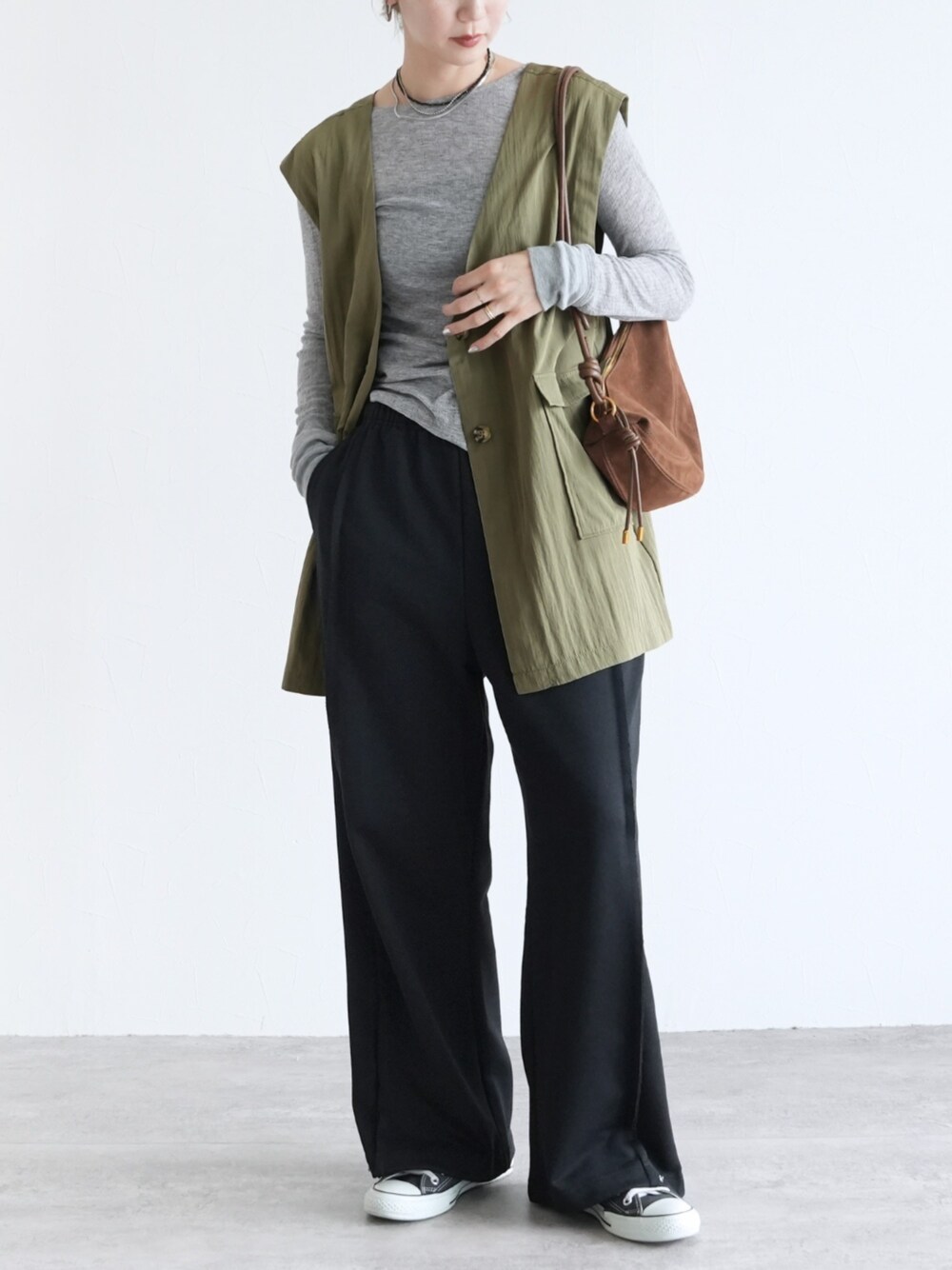 \2025AW NEW ARRIVAL/ reca ▶ヴィンテージVネックロングベスト ▶2WAY裾スナップスウェットパンツ instagram @reca.zozotown