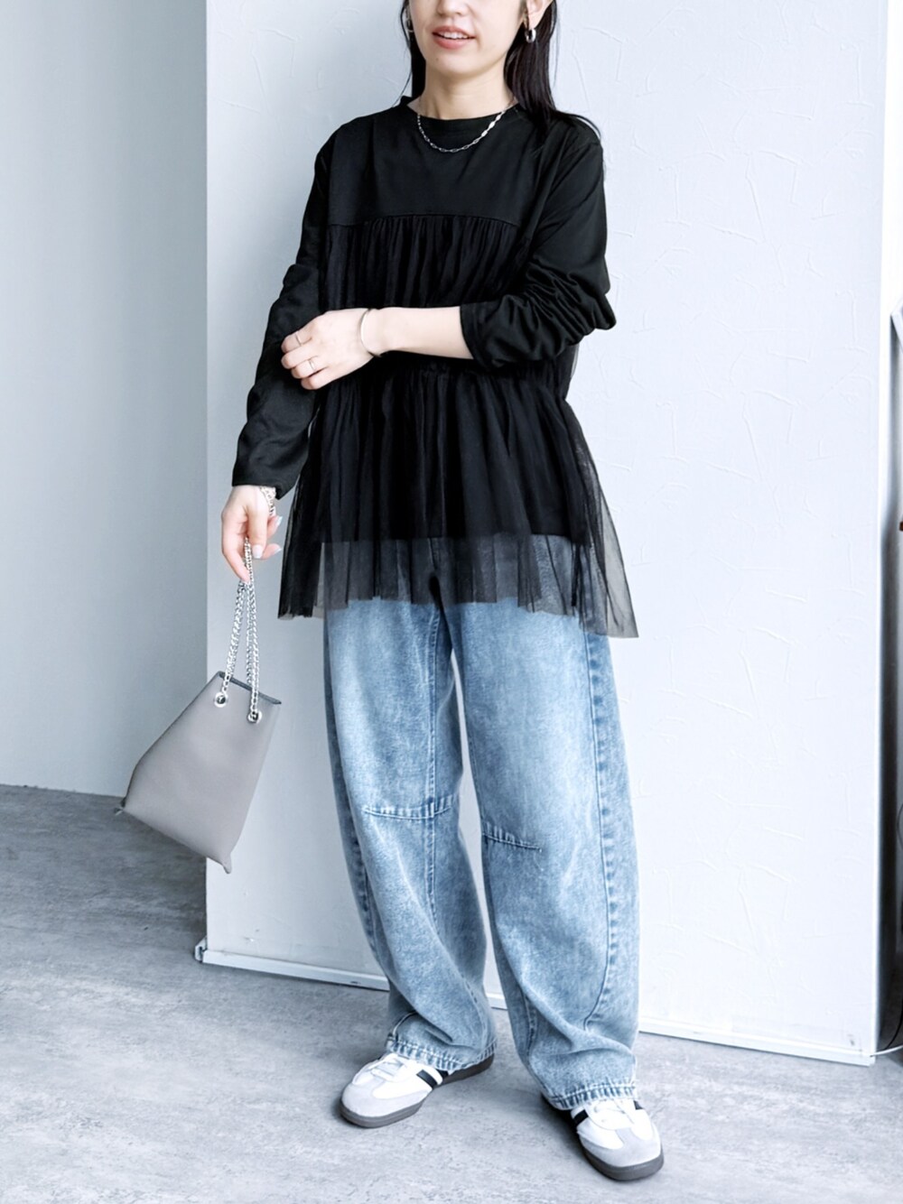 \2025AW NEW ARRIVAL/ reca ▶チュールバルーンスリーブTシャツ ▶デニムバレルレッグパンツ instagram @reca.zozotown