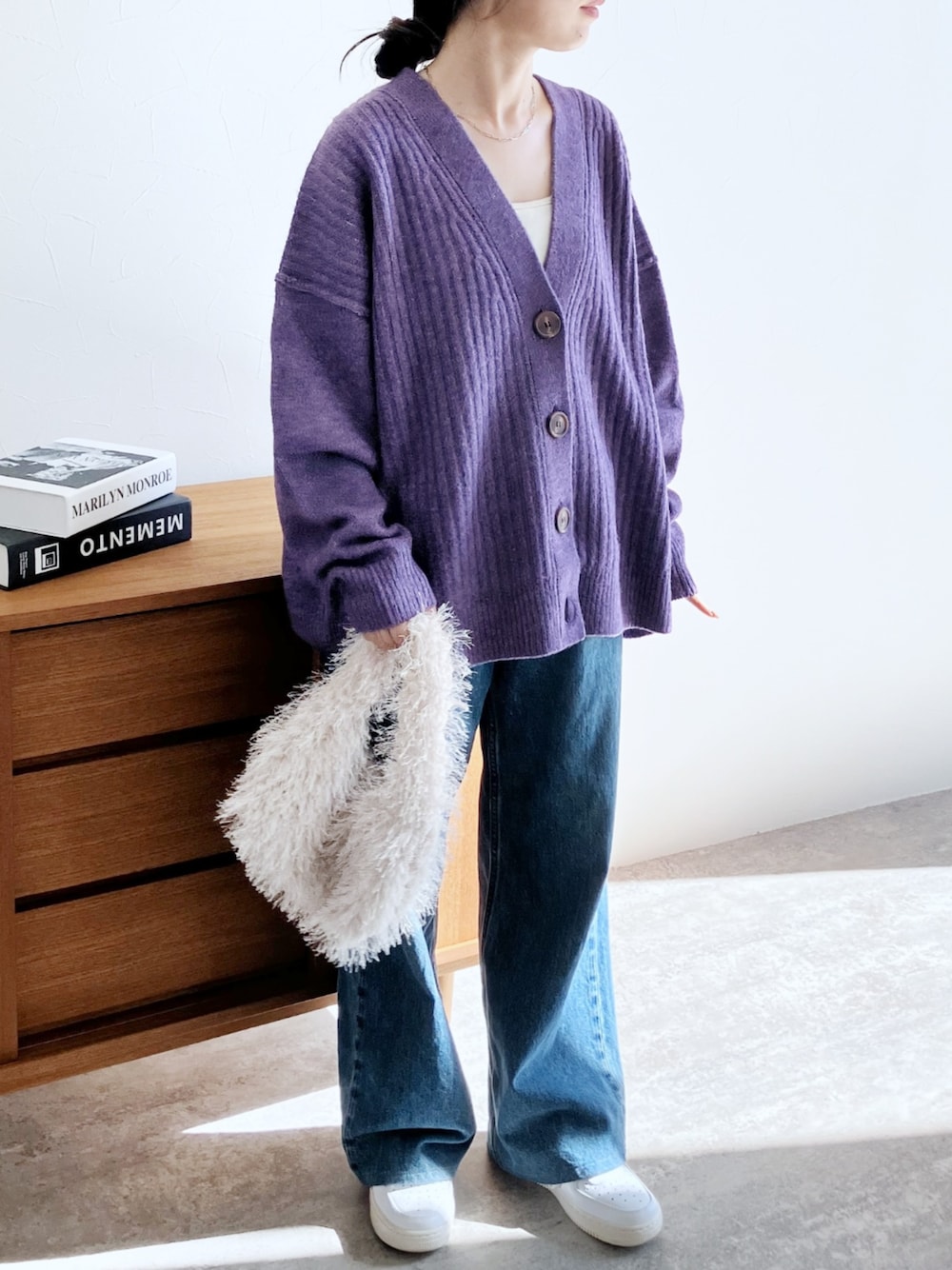 recastaff(reca)のカーディガン/ボレロ「長袖Vネックニットカーディガン」を使ったコーディネート