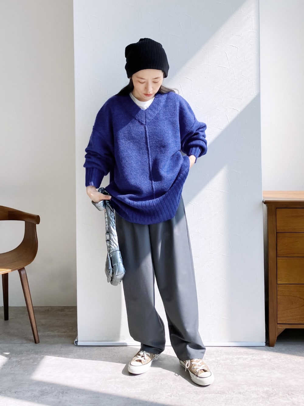 \TIME SALE 実施中!/ reca ▶Vネックオーバーサイズニット ▶【オン・オフ問わず着れる!】ワイドカーブパンツ instagram @reca.zozotown