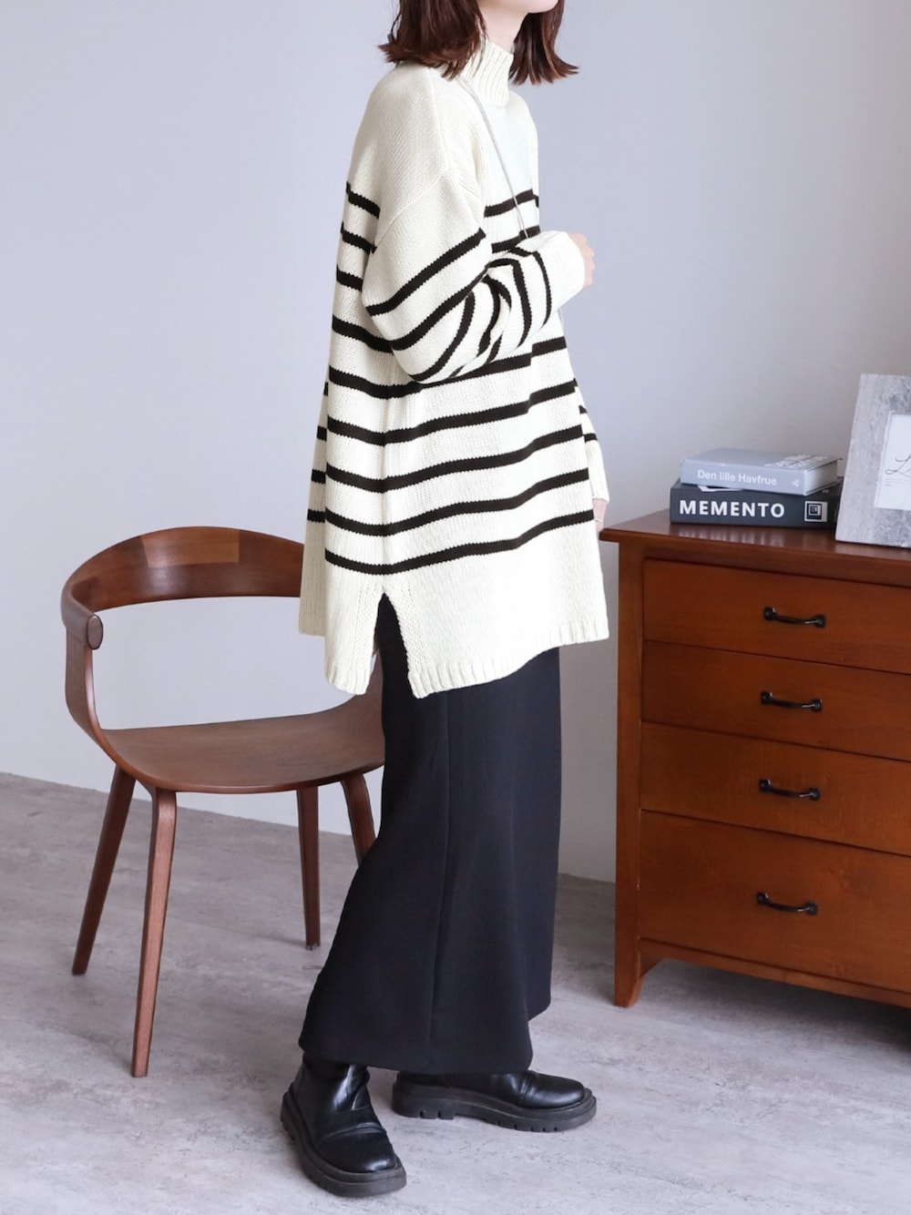 reca ▶タートルネックパネルボーダーニットプルオーバー ▶ボンディングリブニットロングスカート instagram @reca.zozotown