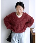 recastaff(reca)のニット/セーター「長毛フェザーヤーンVネックニットプルオーバー」を使ったコーディネート
